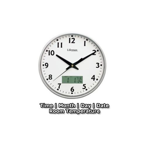 Buy WALL CLOCK 3 in 1. With Room Temperature and Date Month and Day LCD Display. High Vision 25cm Face Cheap Price